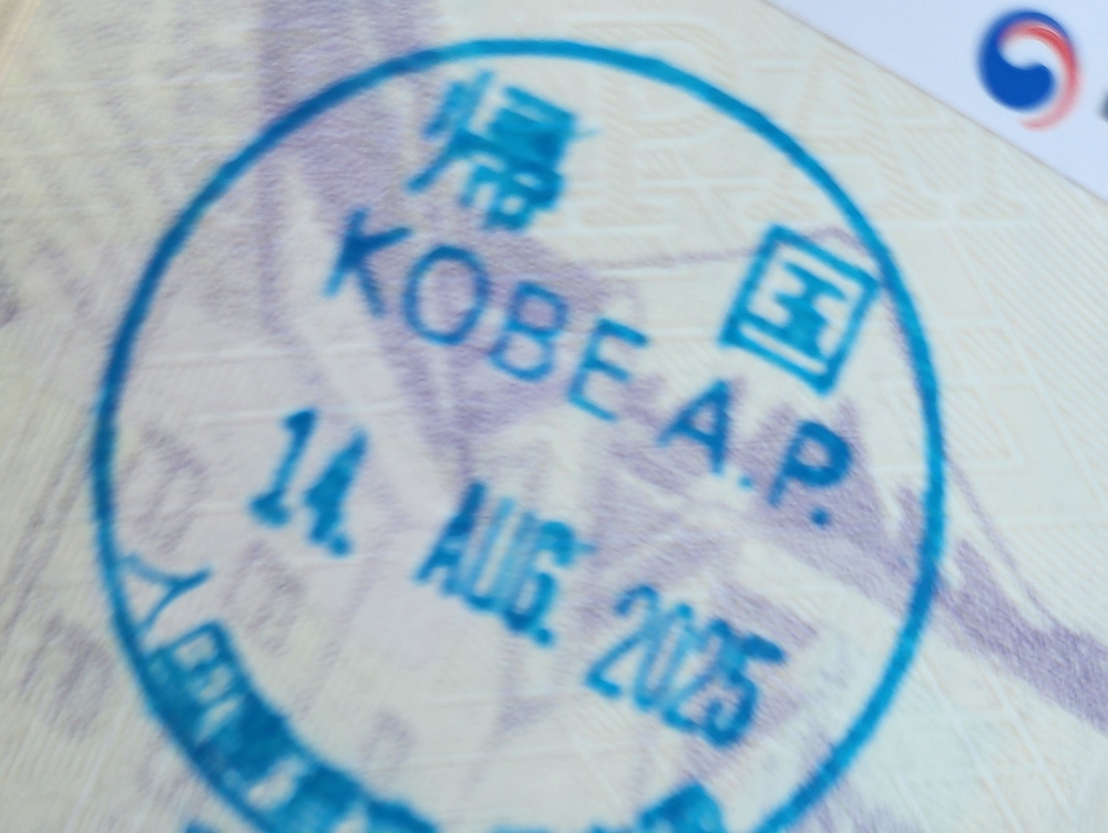 自動化ゲートはないので、「帰国」のスタンプをパスポートに押印されます。神戸空港の国際線を利用するのは3回目だったのですが、毎回インクが多めです。