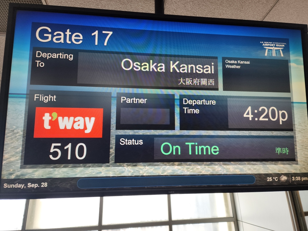 2025年7月に、韓国のLCCであるティーウェイ航空 (T'way) が大阪/関西-グアム便を再開しました。同区間はユナイテッド航空の便と競合しますが、ユナイテッドはグアム→大阪/関西便の時刻が朝7時台発なので、このティーウェイ便の方が便利です。