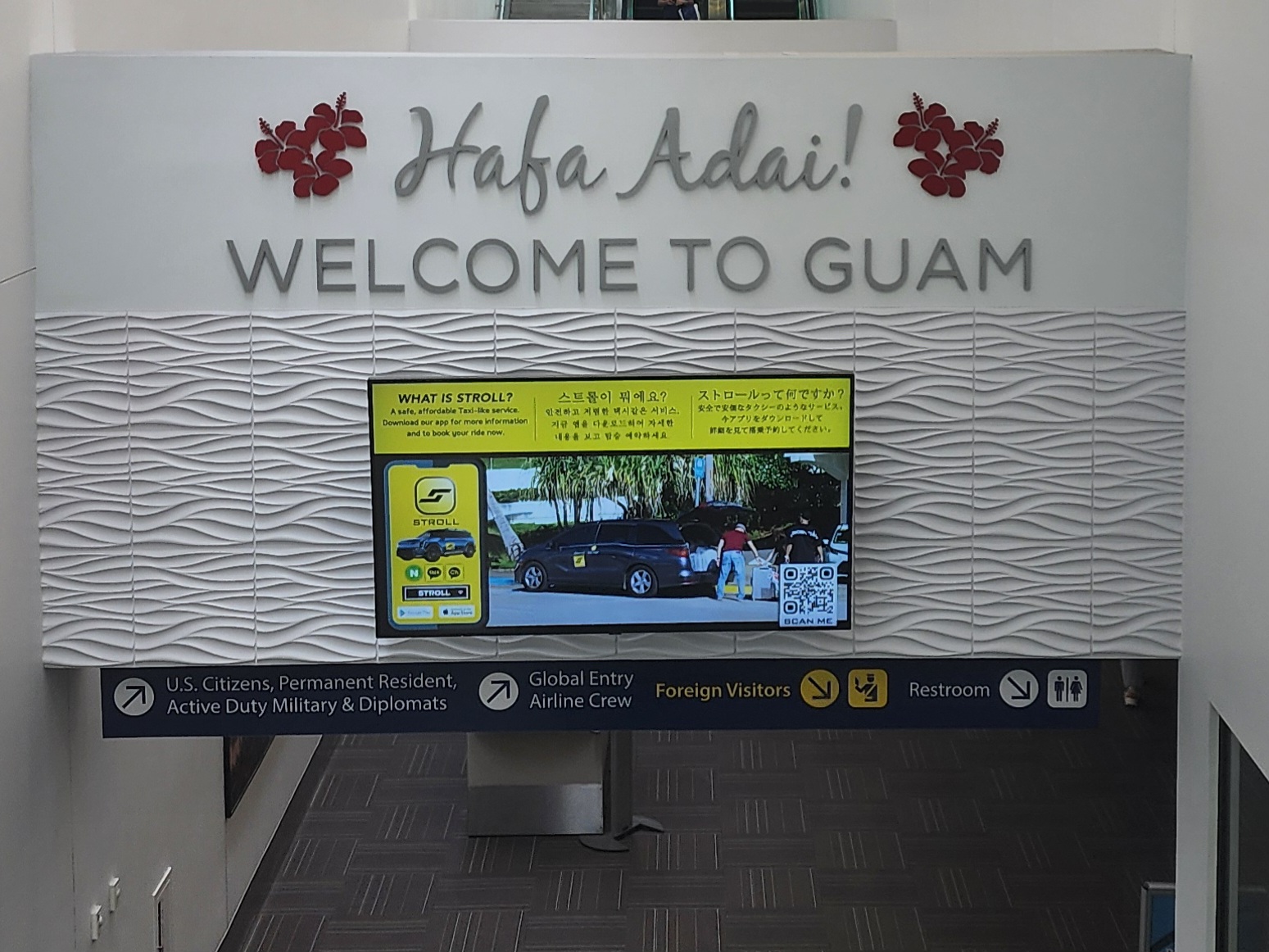 グアム・アントニオ B. ウォン・パット国際空港に到着。